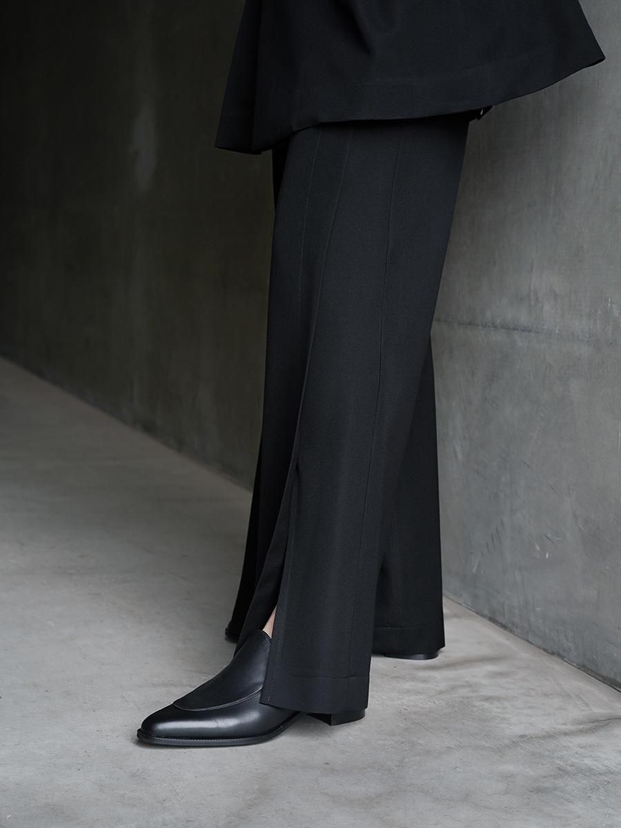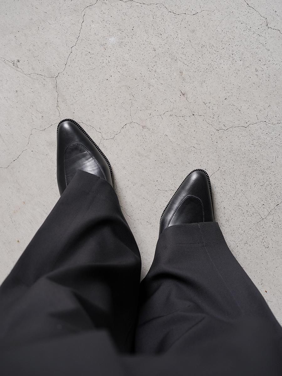 モカの乗ったプレーンなポインテッドトウスリッポン。少し長めのラウンドしたポインテッドトウシェイプなので指先に圧迫感を与えず、太めのパンツからつま先だけ覗かせる事が可能なつま先のサイズ感が最高のバランスを保ってくれる一足となっております。無駄を削ぎ落としたニュートラルなデザインが様々なスタイルに合わせやすく、歩きやすいため、パンプスのように合わせたいきちんとしたオケージョンはもちろん、カジュアルにローファーのように合わせても大活躍しそうな1足。