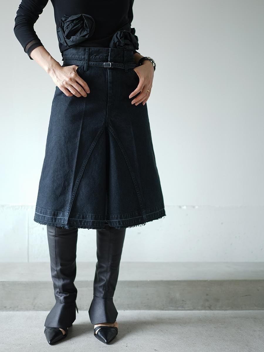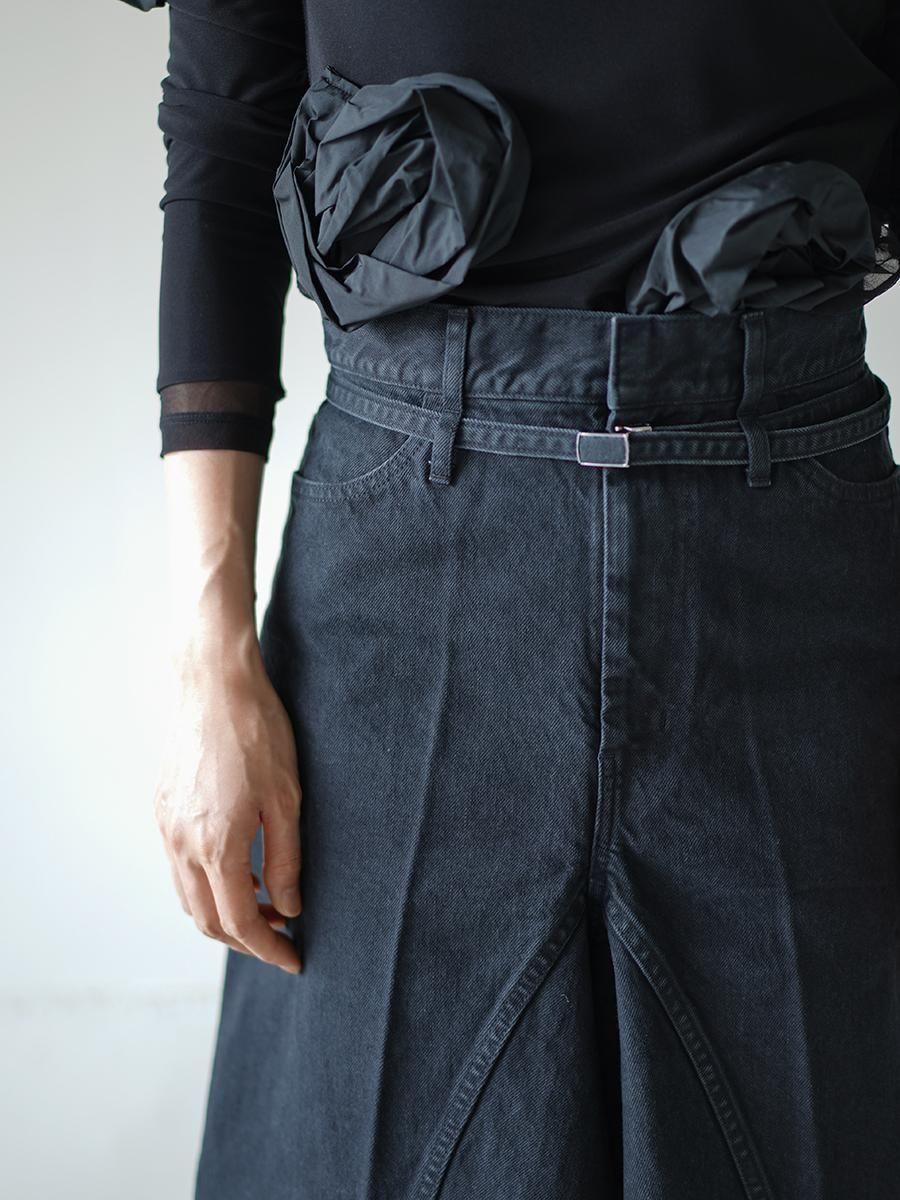 TOGA TOO(トーガトゥー)からハーフパンツのようなディテールが印象的なデニムスカートのご紹介です。