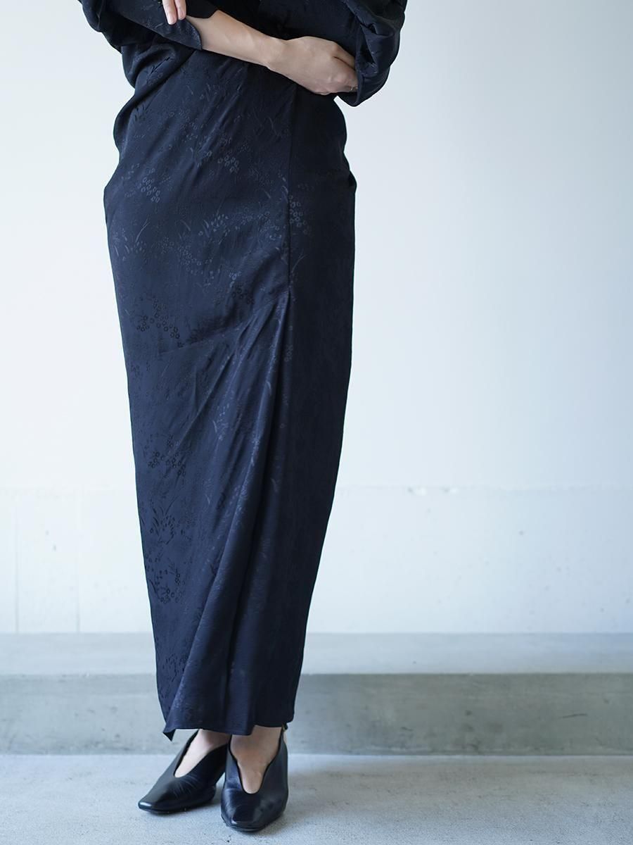 MameKurogouchi(マメクロゴウチ)から、豊かな自然の中で咲く野草が描かれたジャカードドレープドレスのご紹介です。