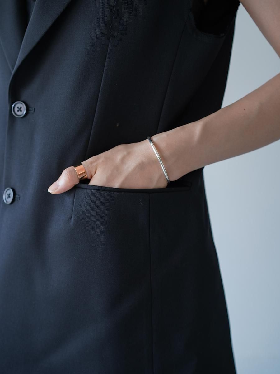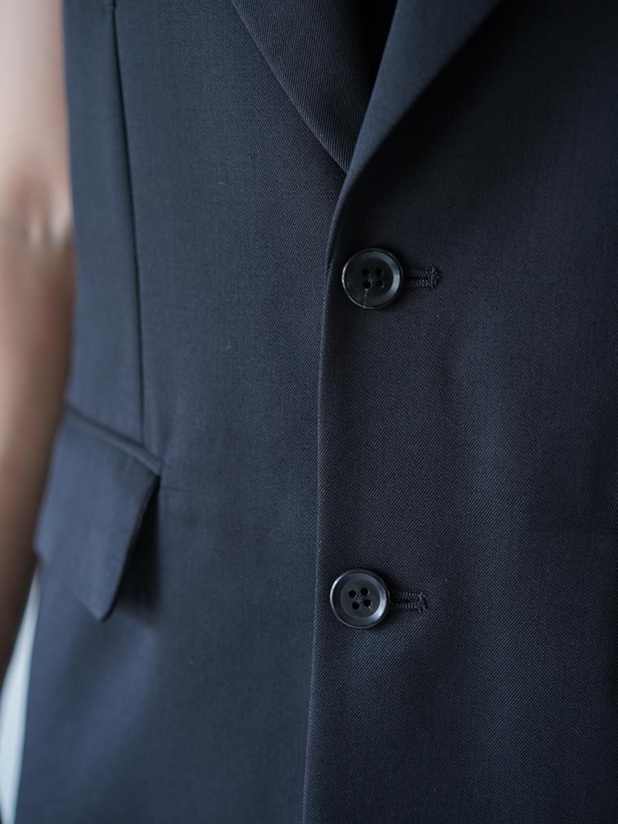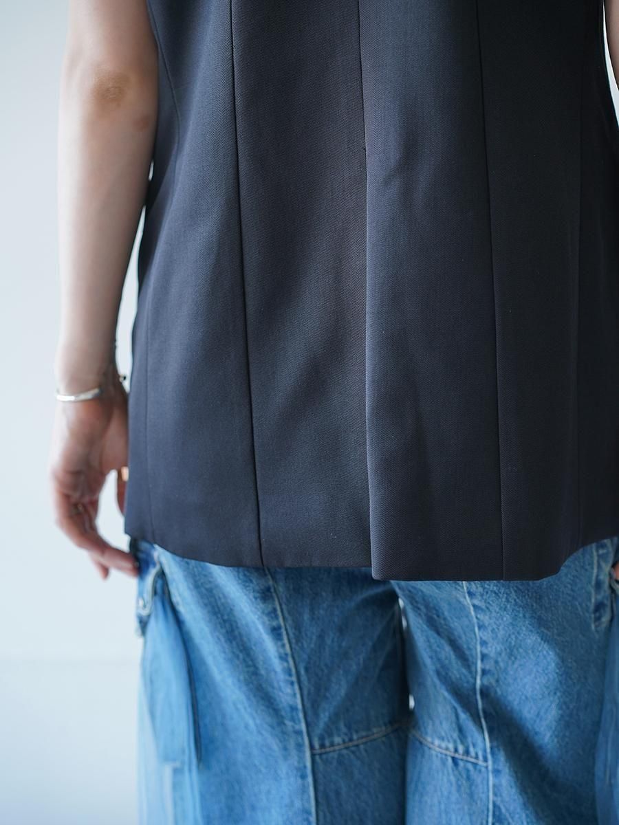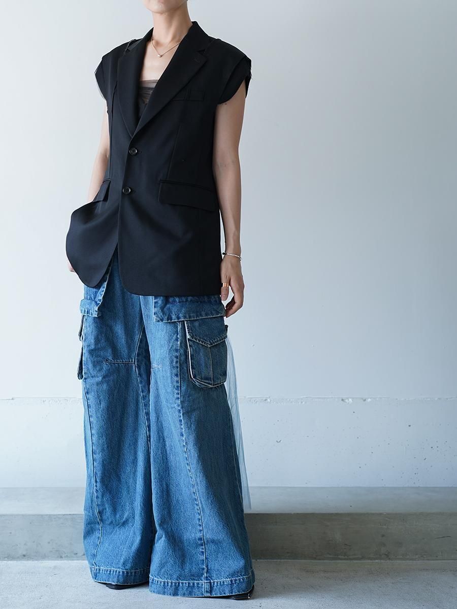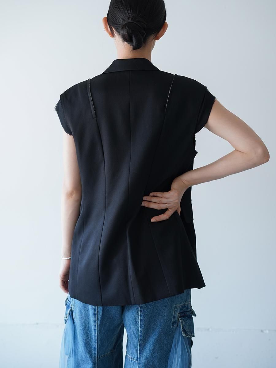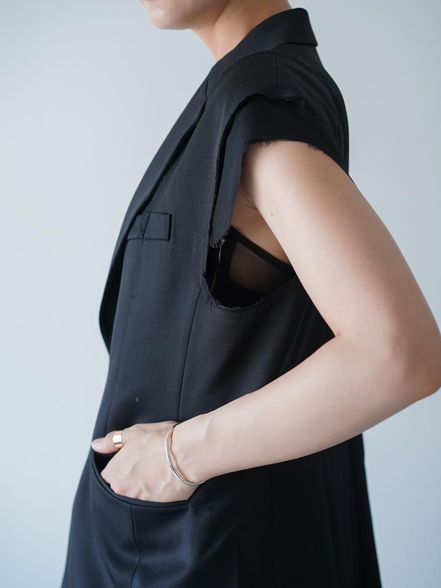 Chika Kisada(チカ キサダ)から、カットアウトされたショルダーから覗くチュールが印象的な、ブランドらしさ溢れるジャケットのご紹介です。洗練された美しいテーラードジャケットと、ショルダー部分に大胆に施されたカットアウトのデザインがスタイリングにアクセントを与えてくれる一枚。ショルダーの内側に重ねられたチュールは、まるでレイヤードしているかのような奥行きを感じさせます。シルエットはストンと落ちるボックス型で、程よいラフさを残しつつも、さりげないウエストのシェイプで女性らしさも引き出してくれるようなラインを出します。