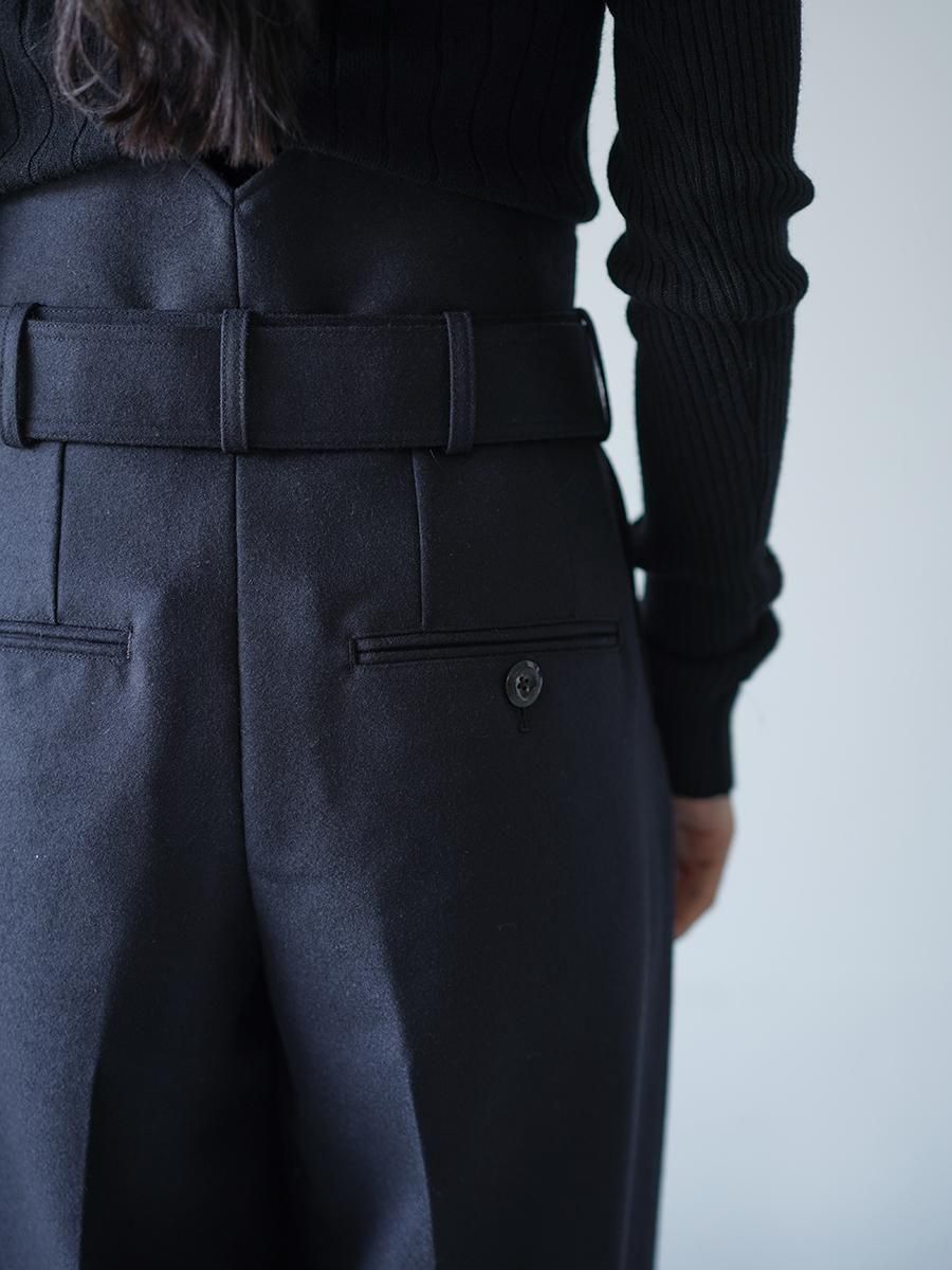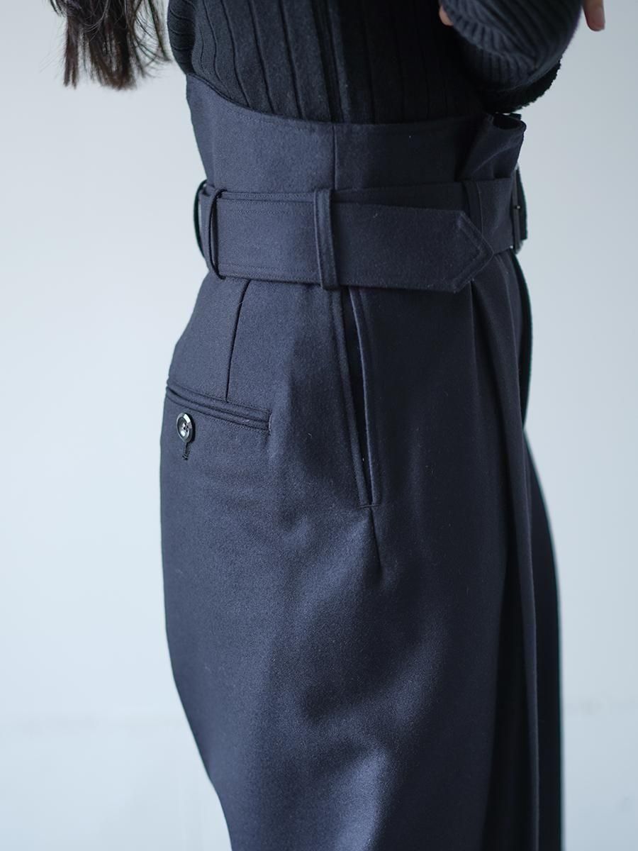 THE RERACS (ザ・リラクス)からウエストベルトがアクセントのシェットランドフランネル素材を使用したベルテッドパレードパンツのご紹介です。