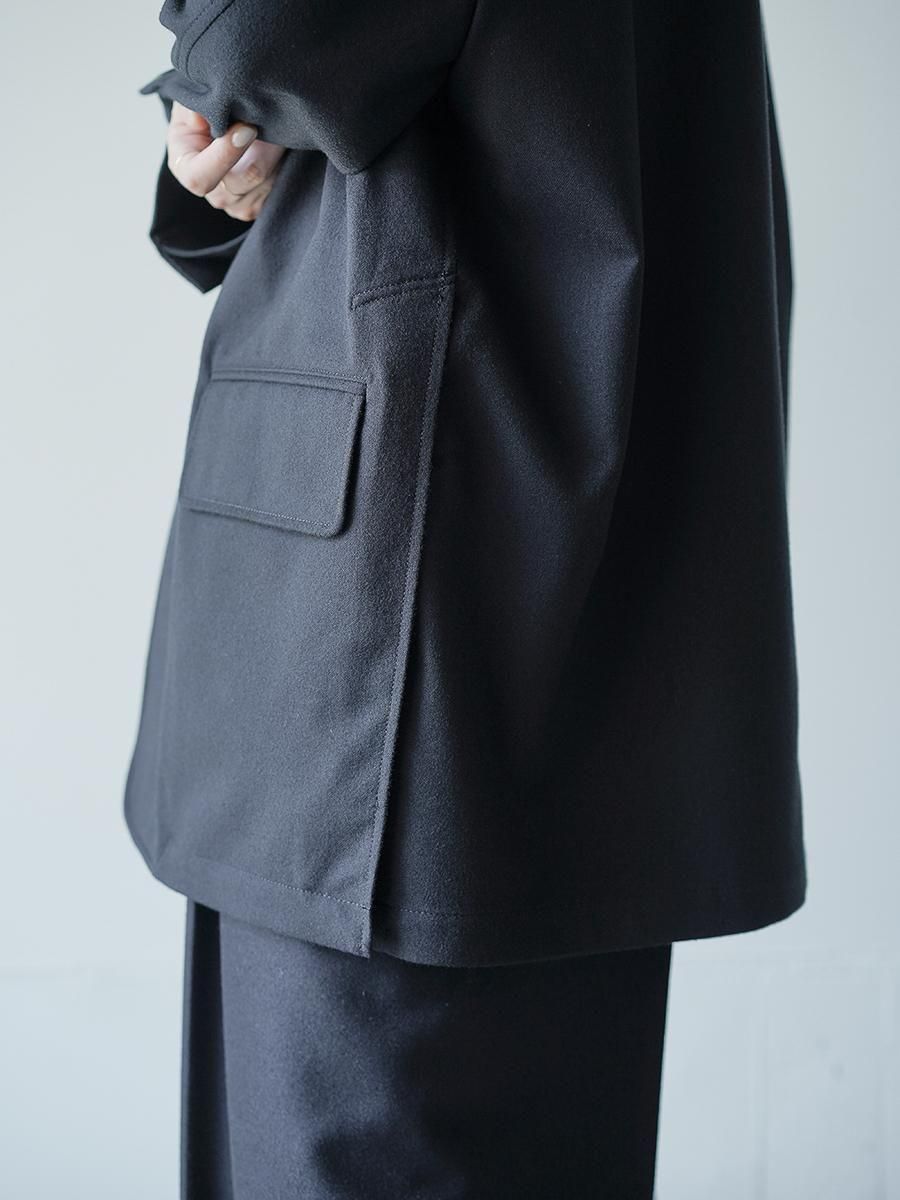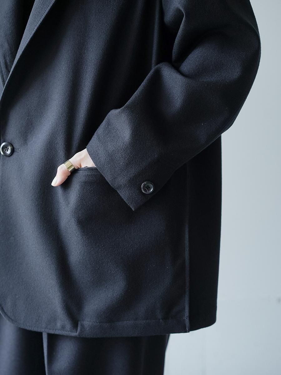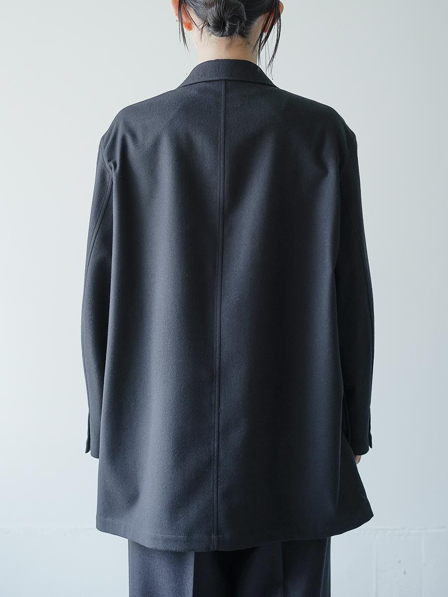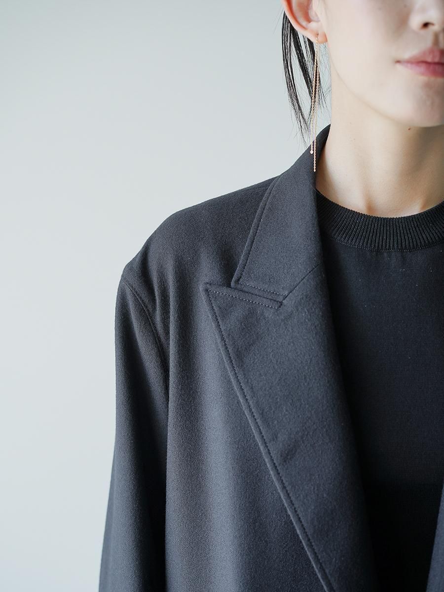 リラックス感のある軽い着心地でありながら、テーラード工場の技術が詰まったピークドラペルや、セットインのショルダー、直線的なボックスシルエットがスタイリッシュな印象を引き立たせます。裏地は付けず折り伏せや袋縫いを施し、軽量かつ美しい仕上がりに。テーラリングの美しさを感じられる佇まいでありながら、温かみのある風合いでカーディガン感覚で着用ができる、THE RERACSらしい一着に仕上げています。