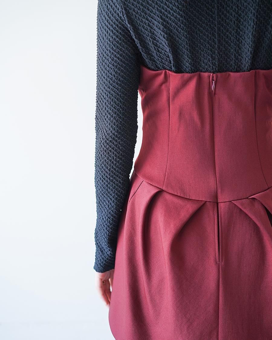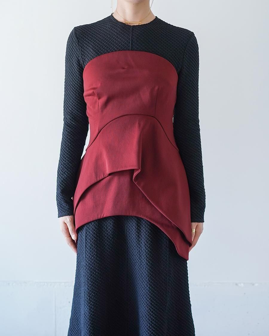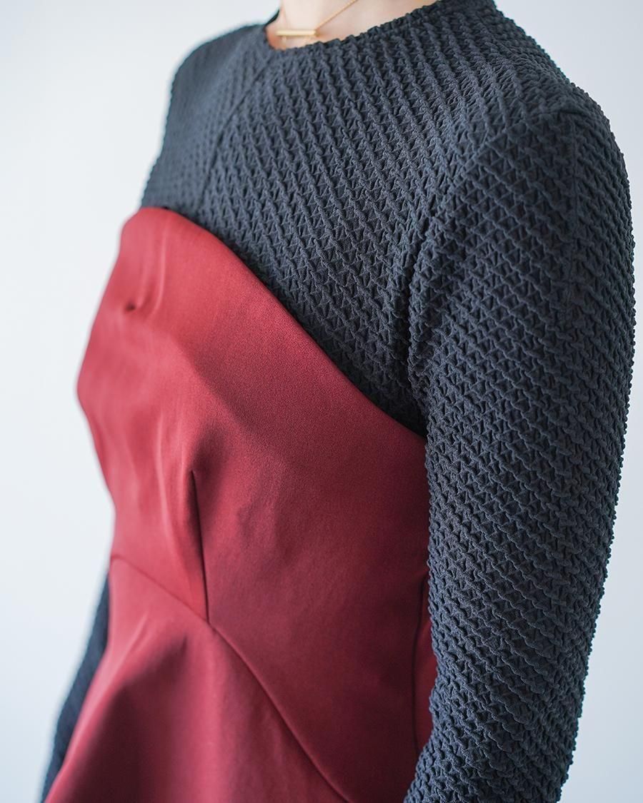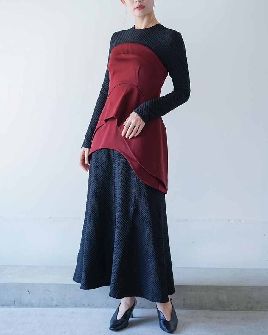 MameKurogouchi(マメクロゴウチ)から、滑らかでストレッチ性のあるジャージー素材を用いたアシンメトリービスチェのご紹介です。