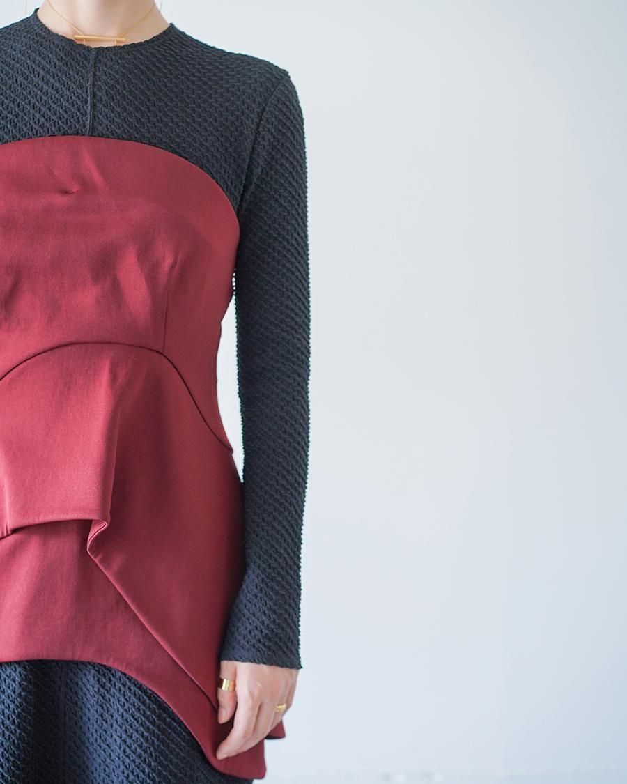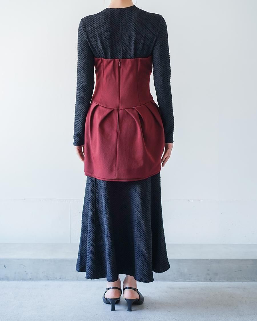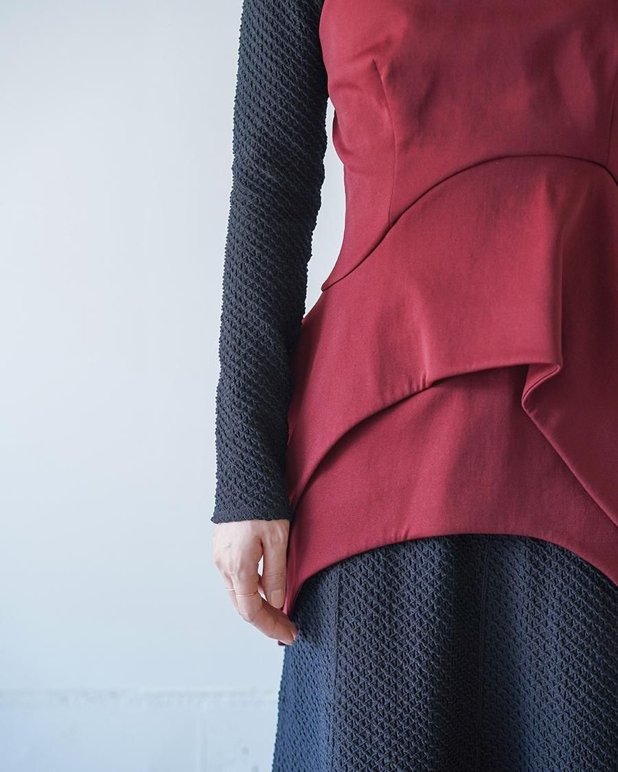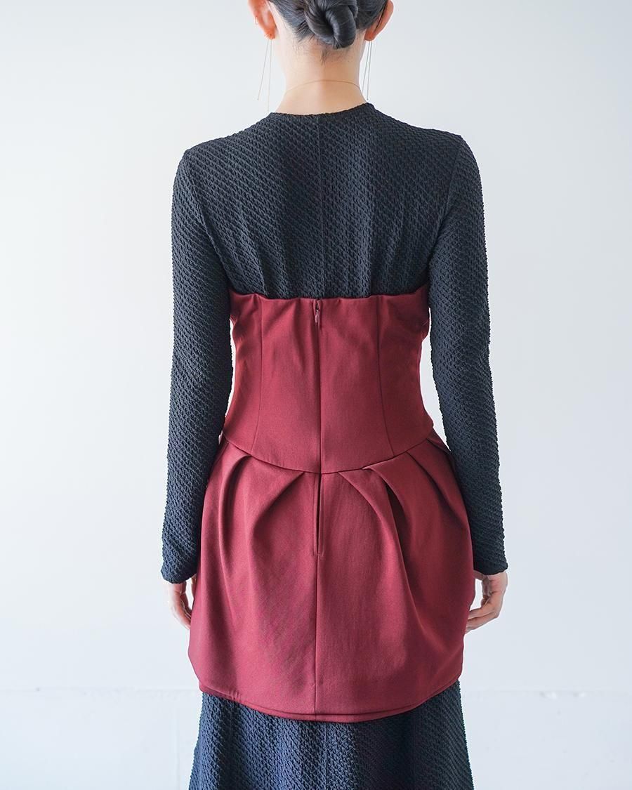 MameKurogouchi(マメクロゴウチ)から、滑らかでストレッチ性のあるジャージー素材を用いたアシンメトリービスチェのご紹介です。