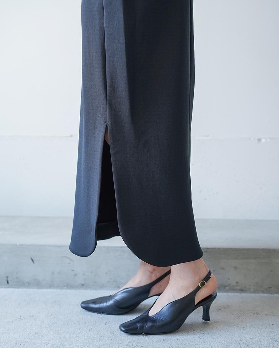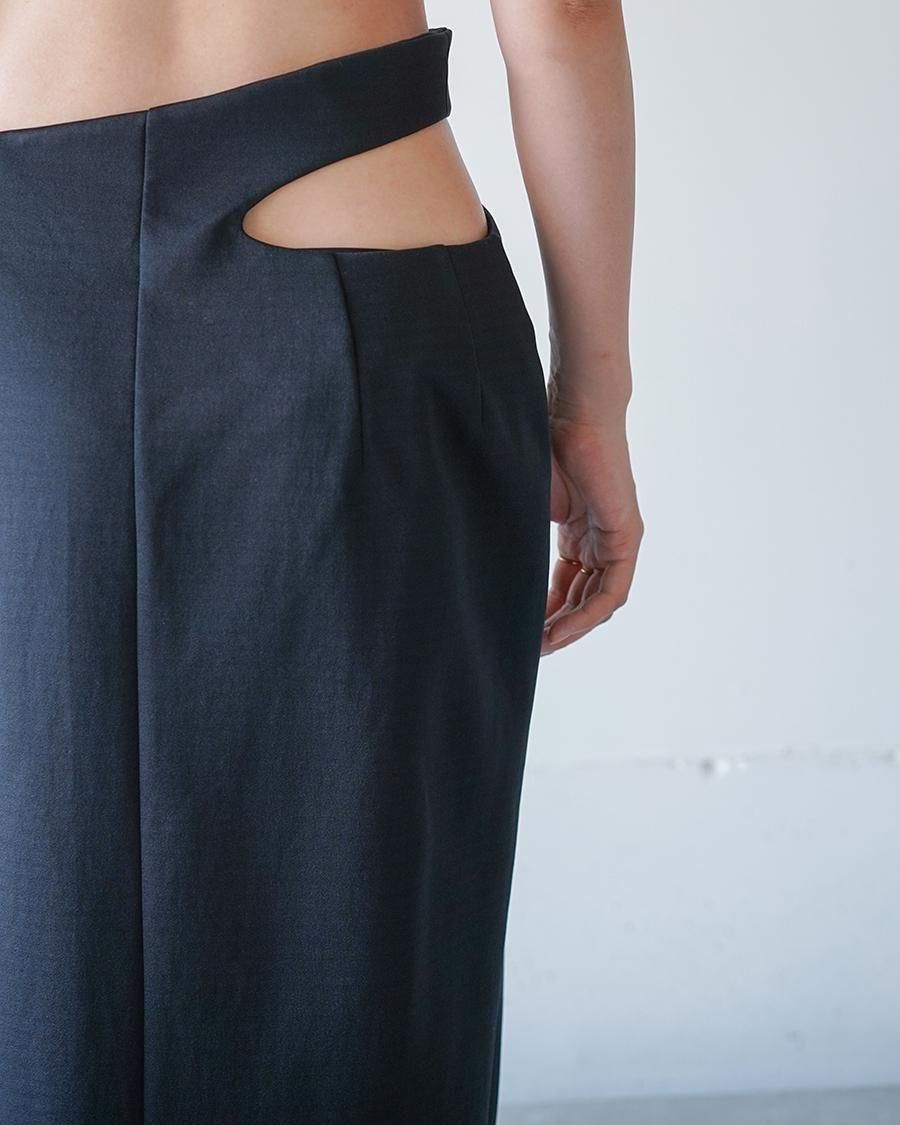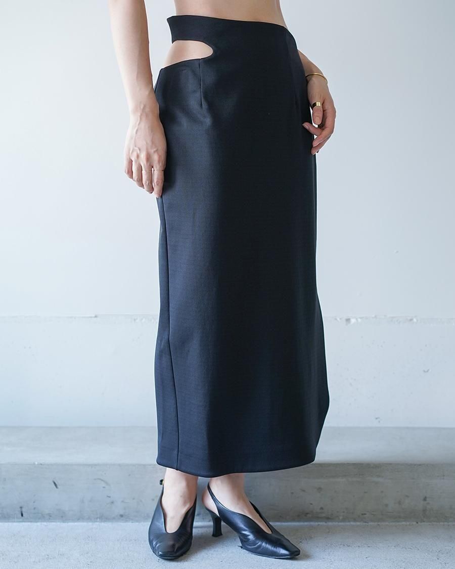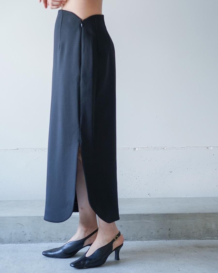 MameKurogouchi(マメクロゴウチ)から滑らかでストレッチ性のあるジャージー素材を用いたアシンメトリースカートのご紹介です。