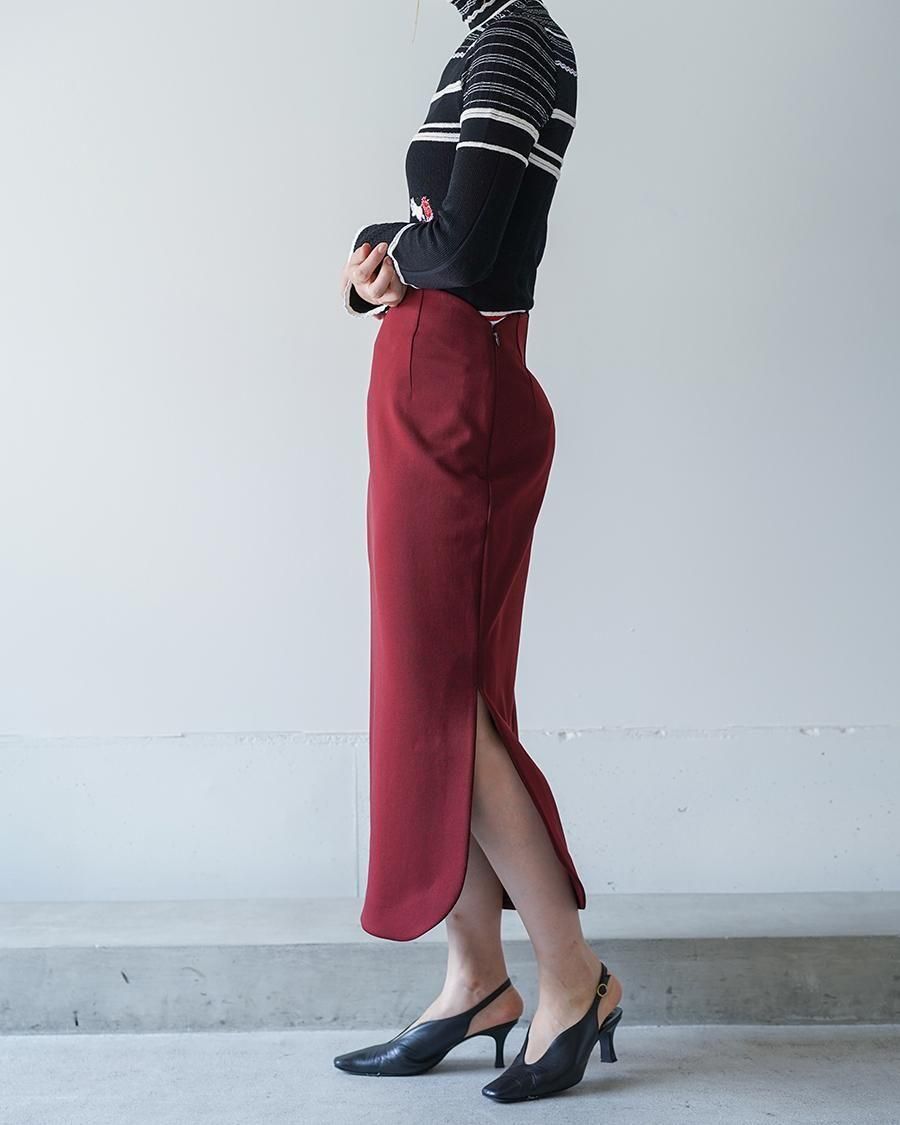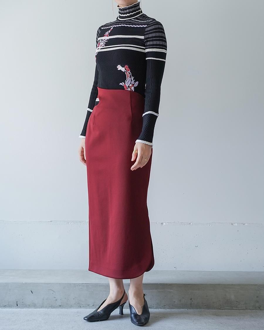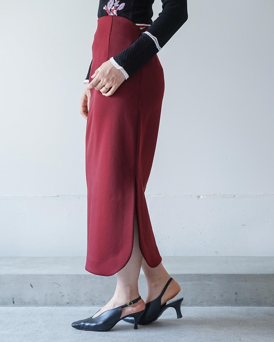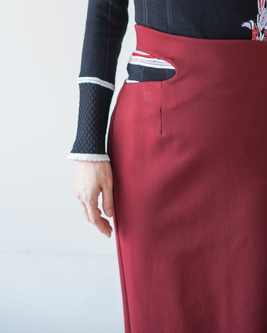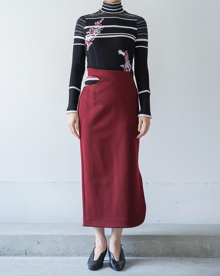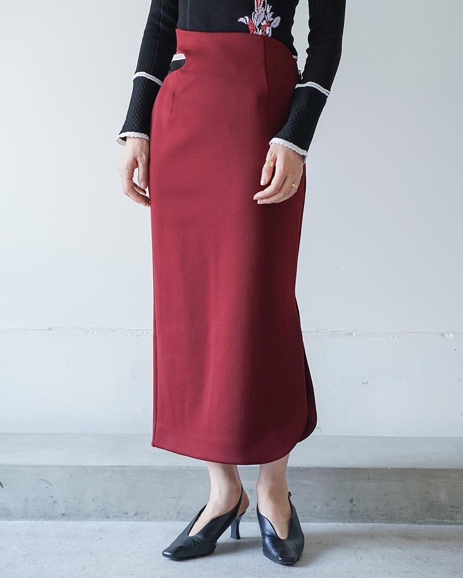 MameKurogouchi(マメクロゴウチ)から滑らかでストレッチ性のあるジャージー素材を用いたアシンメトリースカートのご紹介です。