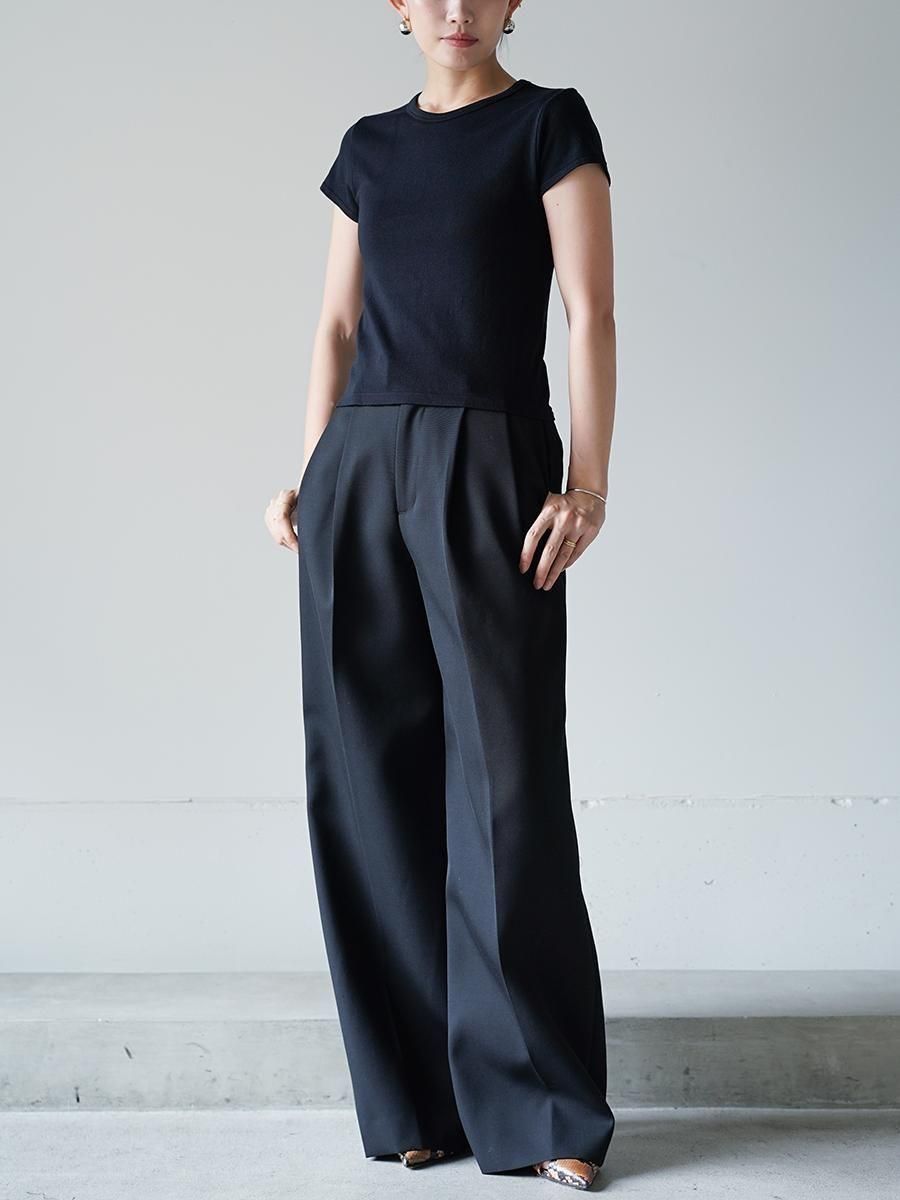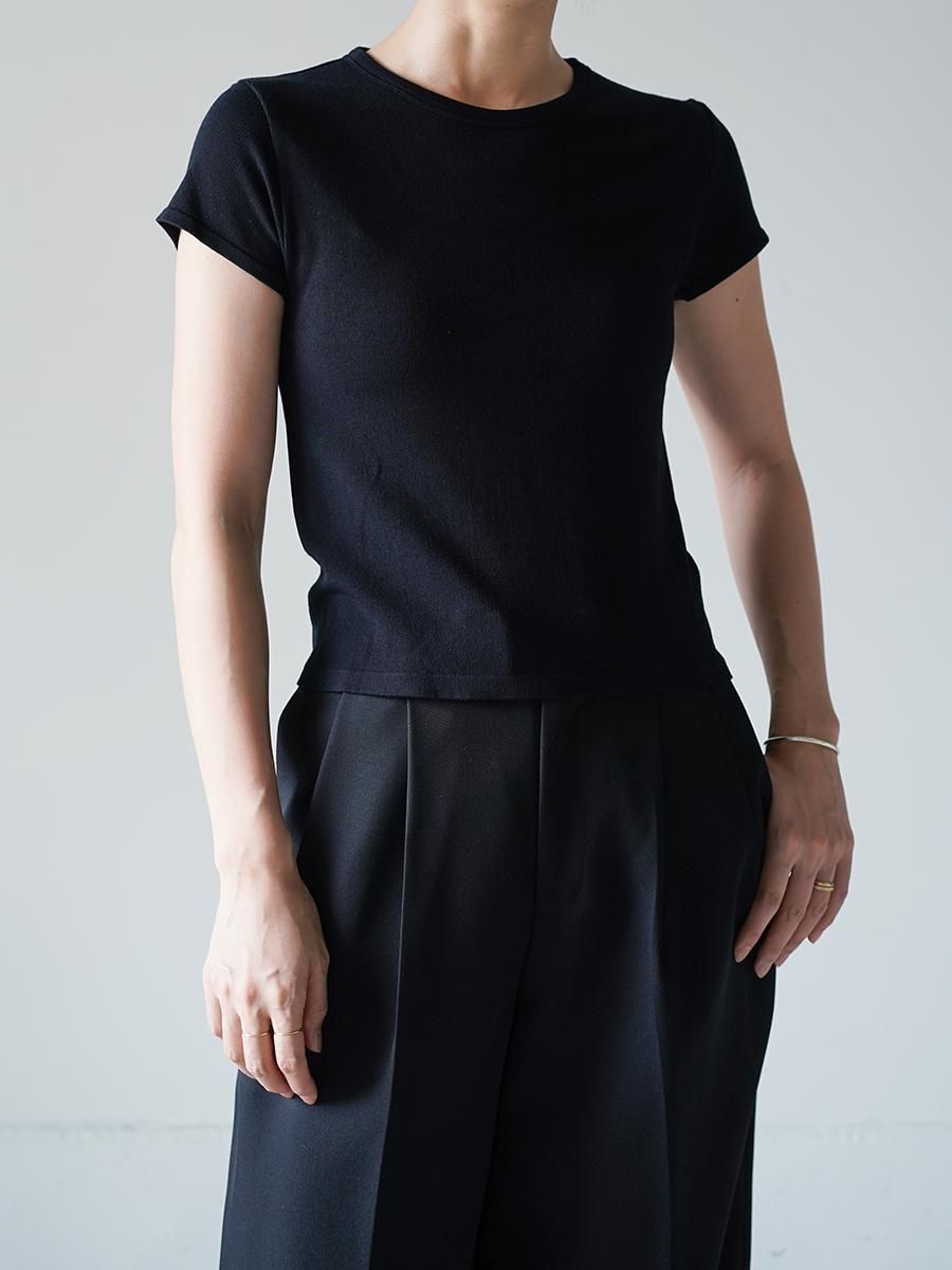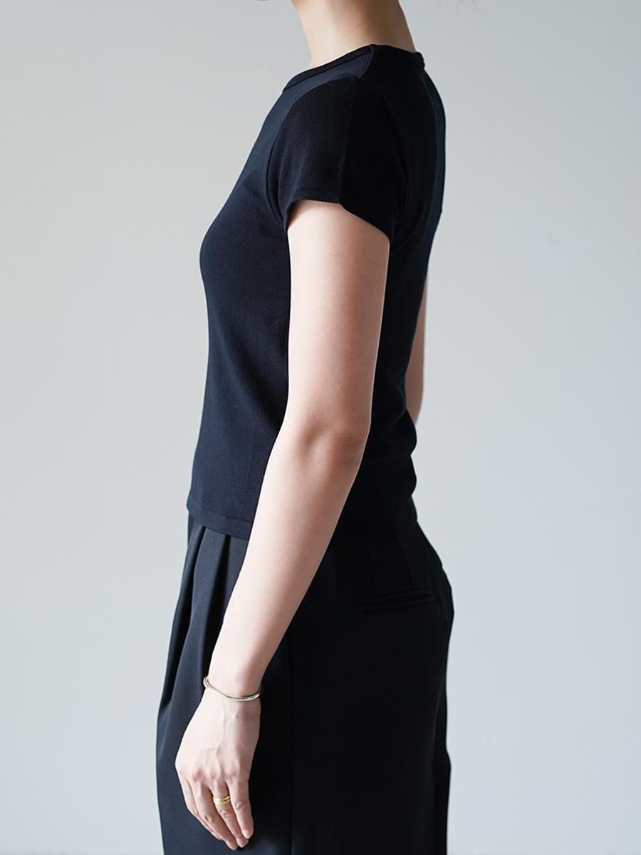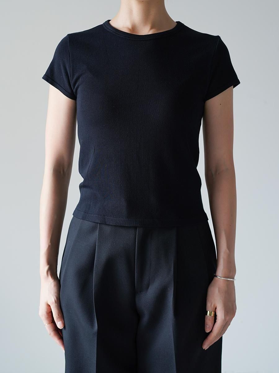 determ;(デターム)から、コラーゲンを含んだ糸を丸編み機で編み立てたコラーゲンリブのTシャツのご紹介です。シームレスなつくりで、優しい肌あたりにこだわったアイテム。ブランドの特徴である魚鱗由来のコラーゲンを含んだ生地は、他にはないしっとりとした肌触りが魅力です。高い保湿性や通気性に加え、消臭性・UVカット効果・抗菌性といった機能性も備えた一枚。デザインはミニマルで、幅広く使い回しが可能です。一枚で着ても、ジャケットのインナーとしてなど幅広く活躍してくれる一着です。