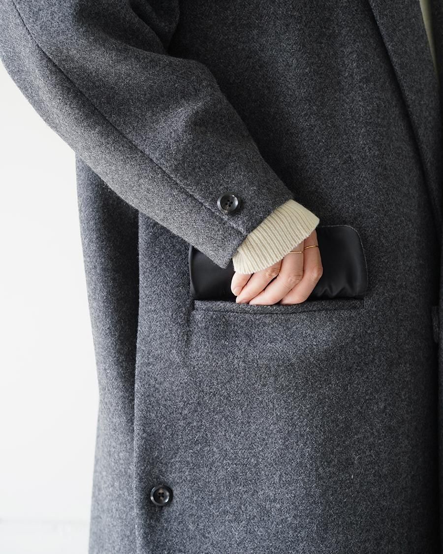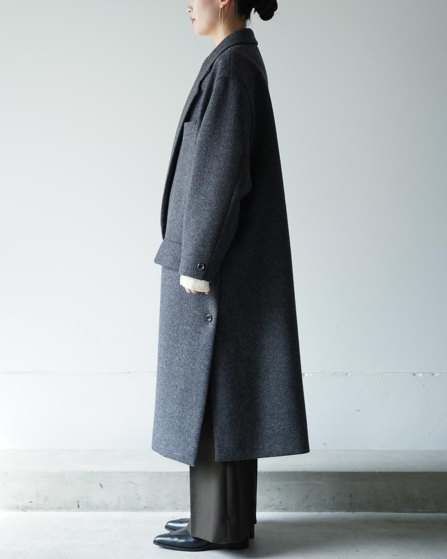 THE RERACS (ザ・リラクス)からダブルシェットランドメルトン素材を使用したルーズチェスターコートのご紹介です。