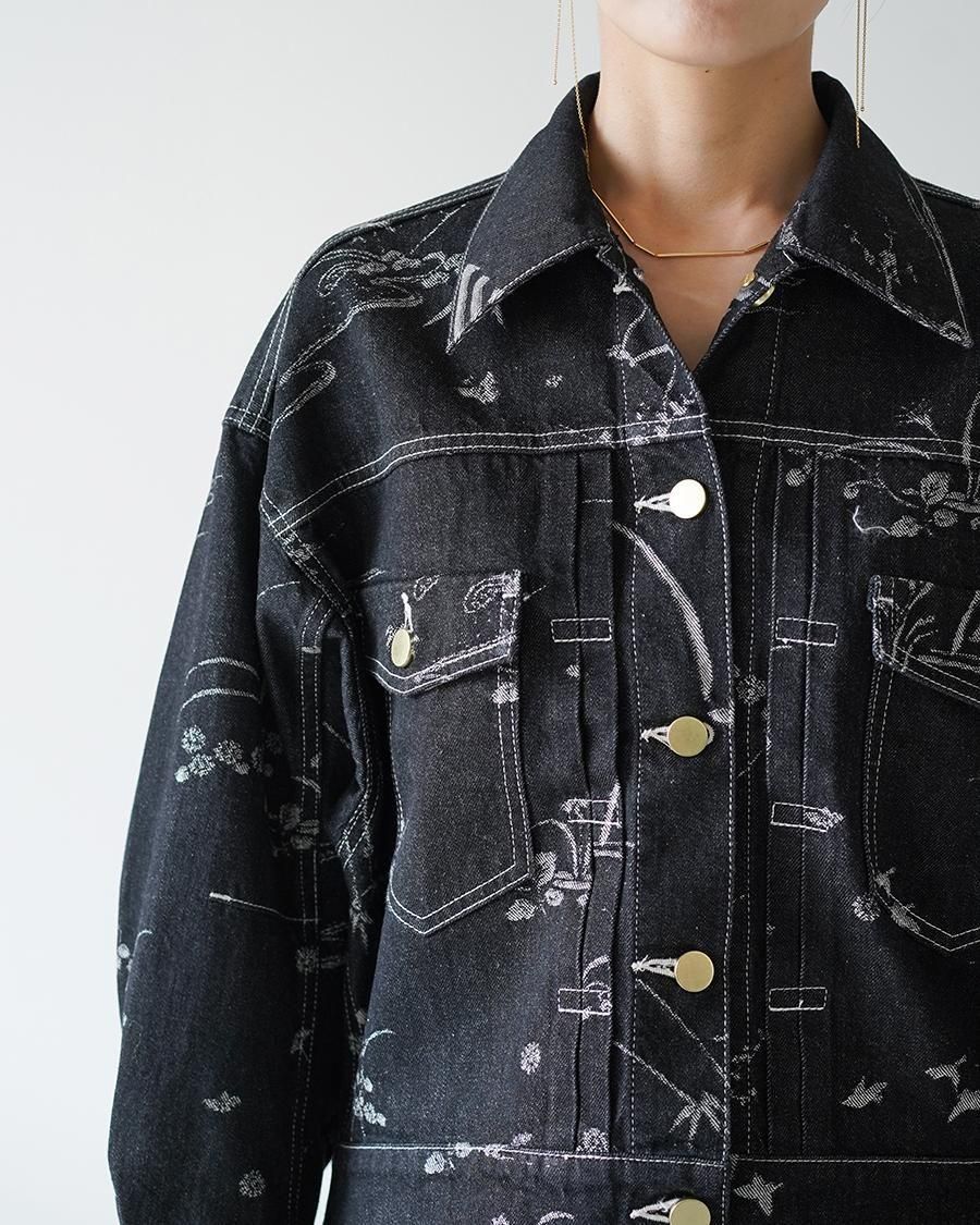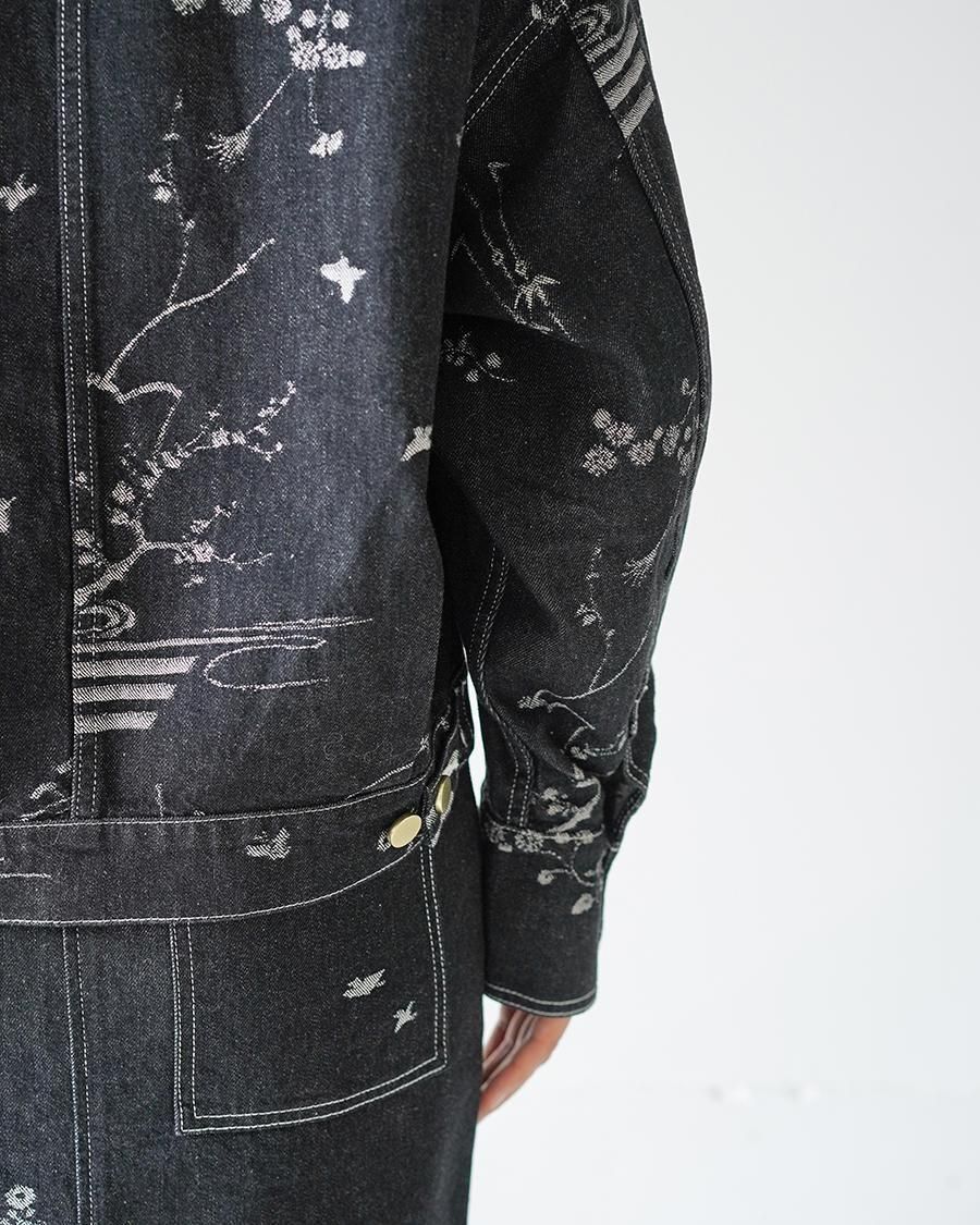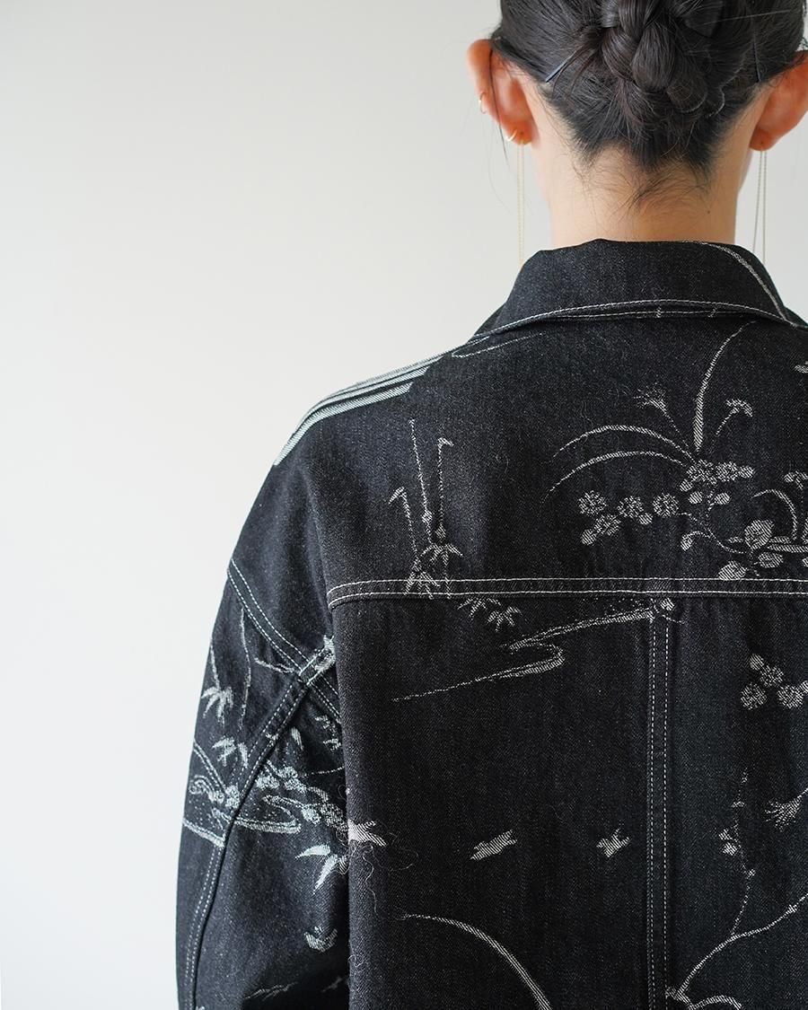 MameKurogouchi(マメクロゴウチ)から、琉球漆器や琉球織物をインスピレーション源にオリジナルの花鳥柄をジャカードで表現したデニムジャケットのご紹介です。