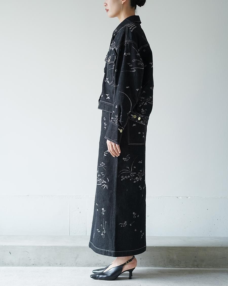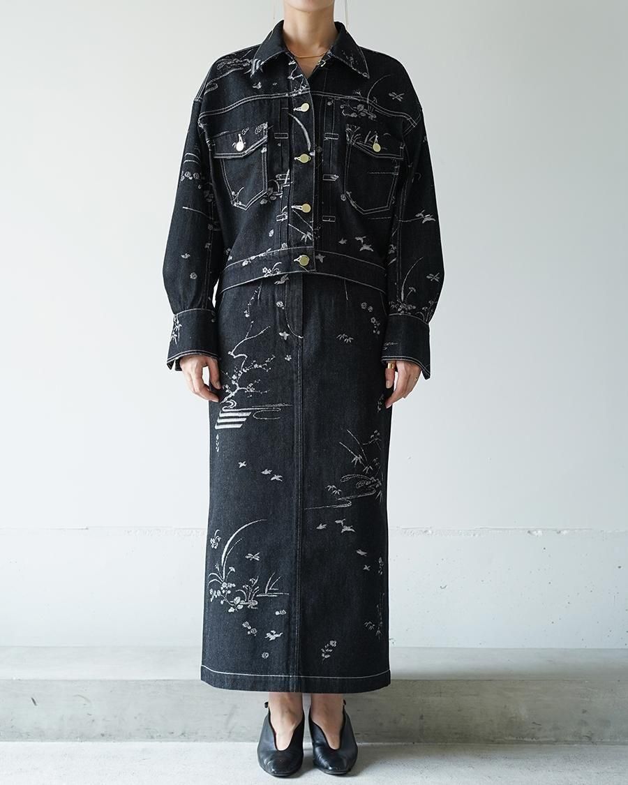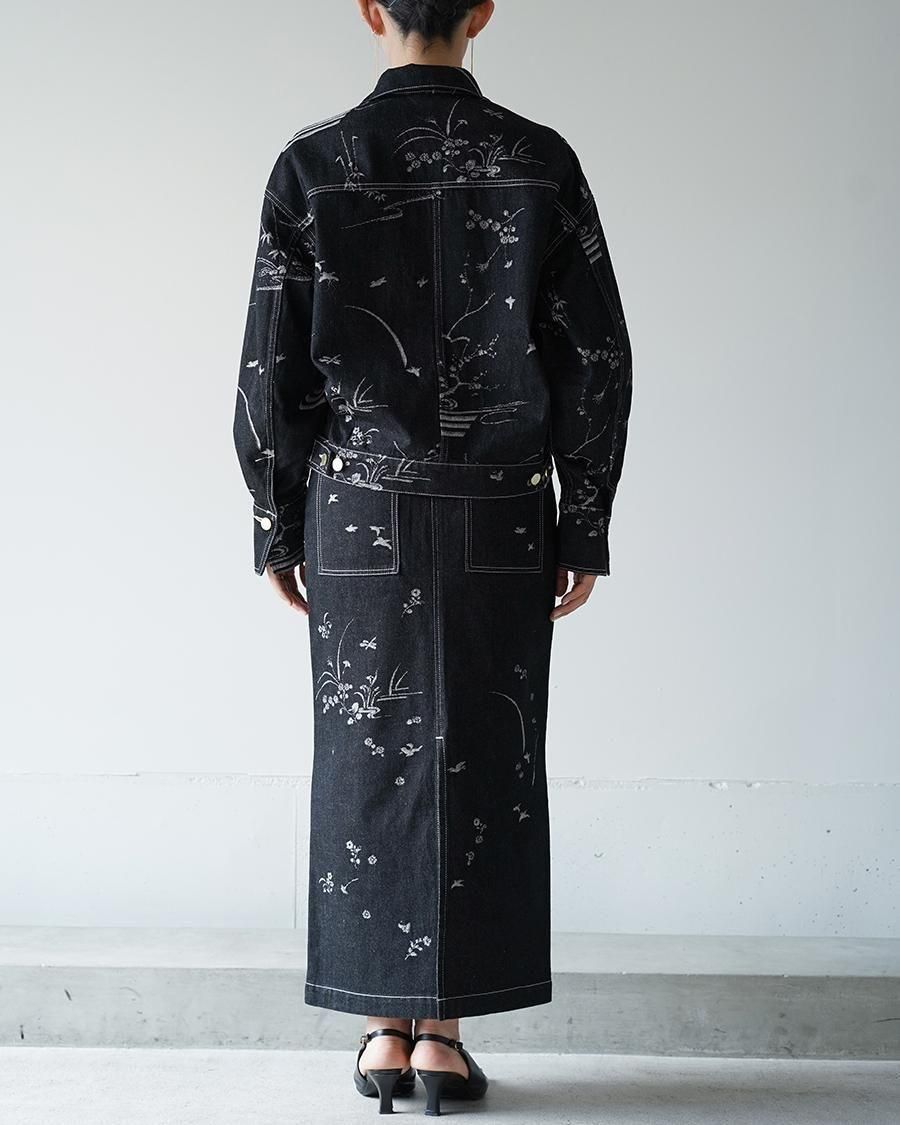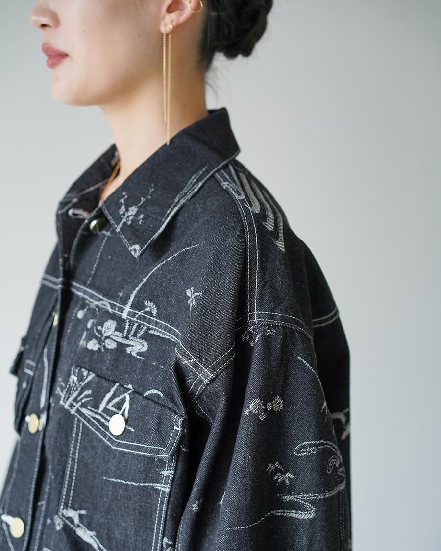 MameKurogouchi(マメクロゴウチ)から、琉球漆器や琉球織物をインスピレーション源にオリジナルの花鳥柄をジャカードで表現したデニムジャケットのご紹介です。