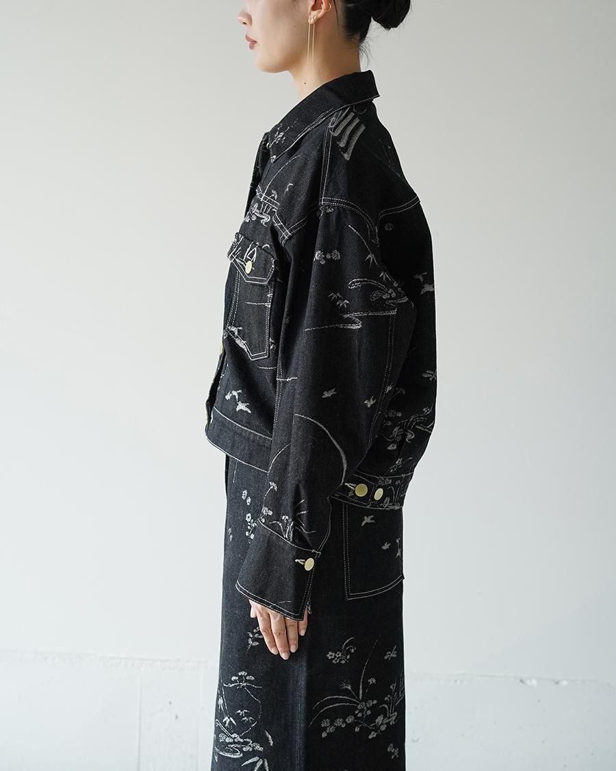- Mame Kurogouchi Nature Pattern Jacquard Short Denim Jacket