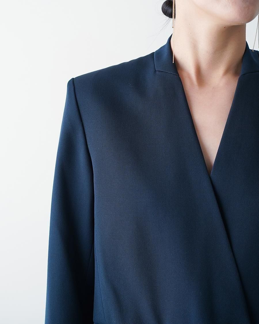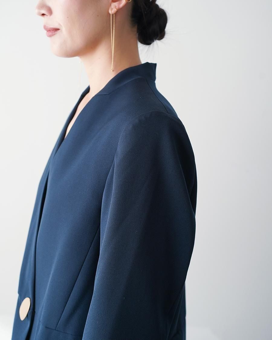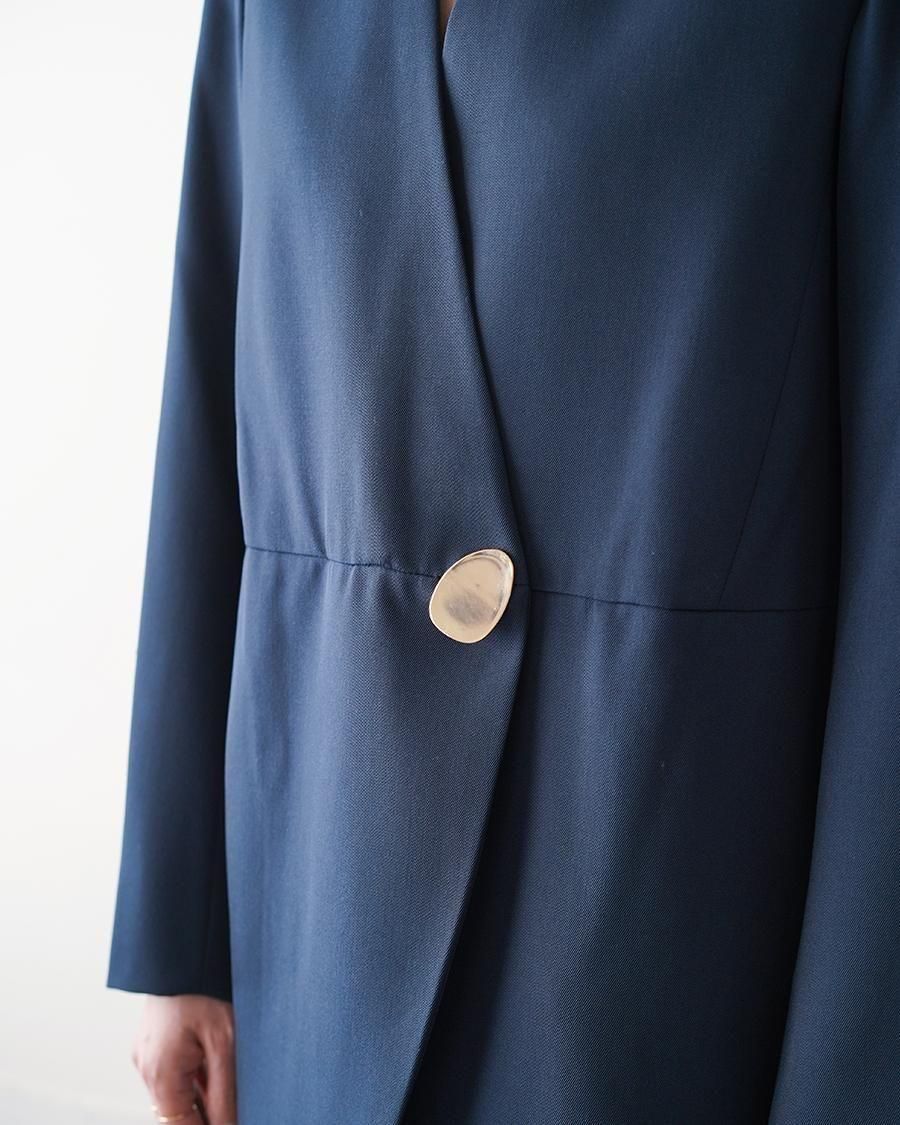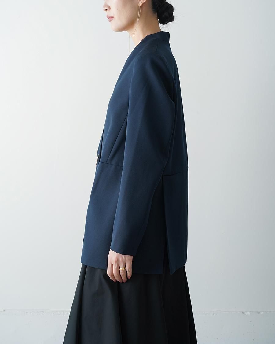 HARUNOBUMURATA(ハルノブムラタ)秋冬新作コレクションより、ブランドのエッセンシャルアイテムとして提案される、ミニマルなカラーレスジャケットのご紹介です。新素材として新たにアップデートされた、滑らかで上品な光沢をもつウール素材を採用した一枚。イタリア製のプレートボタンが、ジュエリーのようなアクセントとしてミニマルな構築美を際立たせます。同素材とのパンツとのセットアップではフォーマルに、単品ではカジュアルなボトムスとも好相性で、幅広いスタイリングに対応します。