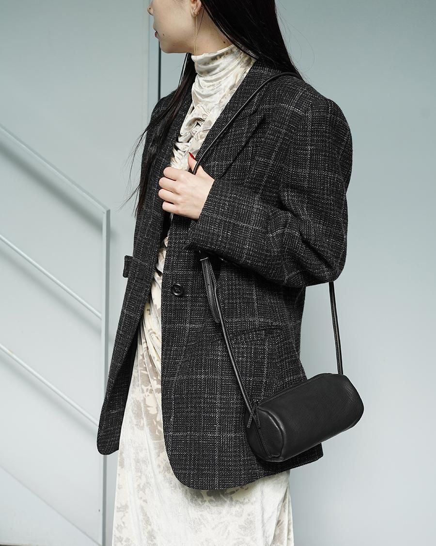 装飾を最低限に削ぎ落とした、ころんとしたミニマルな佇まいが魅力のシリンダー型バッグのご紹介です。必要なものだけ持って身軽に外出するのに程よくコンパクトなサイズ感で、日常使いにも最適です。しなやかさと柔らかさを兼ね備えた上質な鹿革を使用しており、上品なレザーがカジュアルからフォーマルまで幅広いスタイルに活躍します。ショルダーストラップは5段階で長さ調節が可能。洗練されたシンプルなデザインが、スタイリングに自然と溶け込みます。